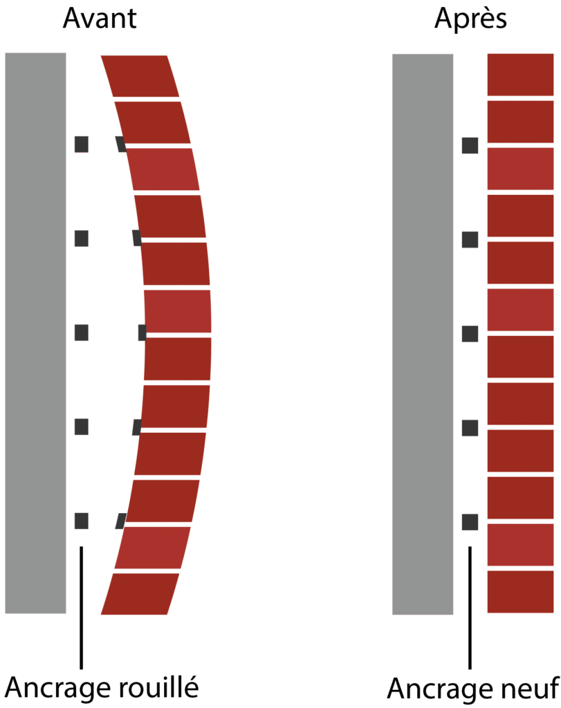 Les ancrages Torkfix permettent de solidifier un mur affaibli sans devoir tout reconstruire.